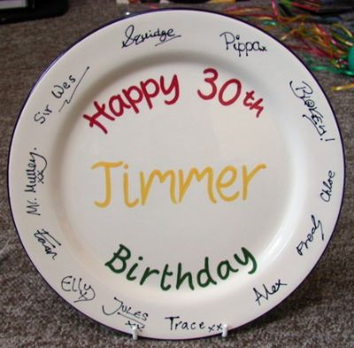 Jo - Coffee maker; Red roses; Balloons; Party; Plate (Picture below, signed by my friends!); Champagne